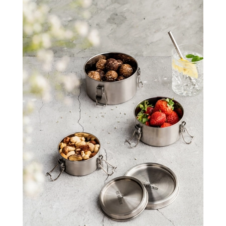 Egal für welchen Zweck du dich entscheidest: Das was in den Boxen landet, bleibt frisch und lecker. Das 3er Set ist aus robustem, geprüft lebensmittelechtem Edelstahl. Daher gibt es keine Geruchs- oder Geschmacksübertragungen. Wir würden sagen: die Bao Bowls+ sind echte Allround Talente dürfen in keiner Küche fehlen. Alufolie, Frischhaltedosen oder Brotboxen aus Plastik haben ausgedient.- 3er Set auslaufsichere, runde Frischhaltedosen (200 - 700 ml)
