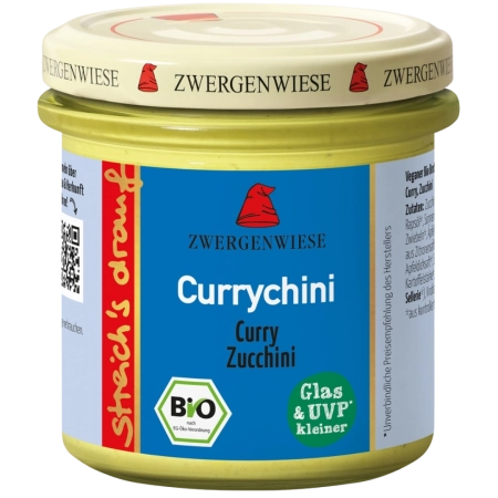 Bring Abwechslung auf Dein Brot – mit dem Zwergenwiese Streichs Drauf Currychini Bio. Dieser vegane Bio-Brotaufstrich kombiniert die feine Würze von Curry mit der Frische von Zucchini und sorgt für ein pikant-exotisches Geschmackserlebnis, das begeistert.