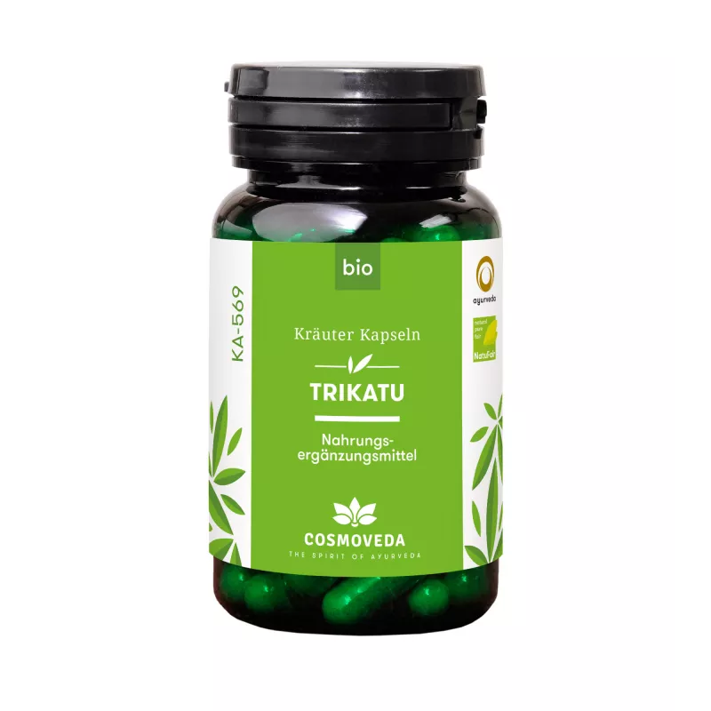Trikatu es una mezcla de especias a base de pimienta negra (Piper nigrum) y larga (Piper longum) y jengibre (Zingiber officinale). De acuerdo con las enseñanzas de Ayurveda, Trikatu equilibra los doshas. En la nutrición ayurvédica, el equilibrio de los seis sabores es de gran importancia para mantener el equilibrio de los doshas*. Puedes saber más sobre el principio ayurvédico de los doshas, que no tienen equivalente en la medicina occidental moderna, en el artículo del blog sobre la enseñanza de los tipos ayurvédicos .