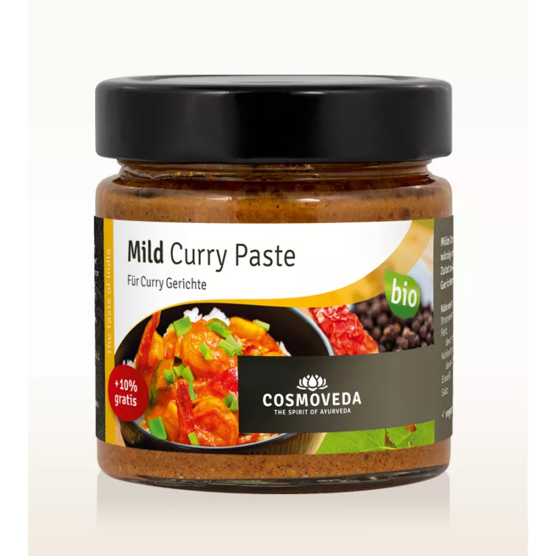 Pasta de curry suave, que es particularmente adecuada como guarnición picante y rica en proteínas o como ingrediente para platos de curry ayurvédico e indio.