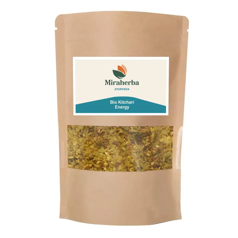 Notre Kitchari Energy bio donne du peps à ta journée ! La combinaison de riz basmati fin, de mung dal riche en nutriments et d'épices aromatiques comme le gingembre, le galanga, le piment et le pippali apporte une chaleur vivifiante. La carotte et la tomate confèrent au plat une douceur et une fraîcheur naturelles. Parfait pour les journées actives, lorsque tu veux offrir à ton corps un repas facile à digérer, mais plein de force !