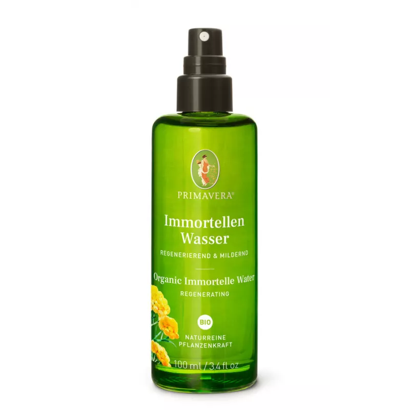 L'eau d'immortelle bio tiède et épicée sert de spray de premiers secours rapide pour les bleus , les bleus légers et les muscles endoloris. Son effet décongestionnant et apaisant se fait sentir immédiatement. Il a un effet relaxant, constructif et fortifiant sur la peau. Il régénère, apaise et soigne les peaux particulièrement stressées et est également souvent utilisé pour soigner les peaux matures.