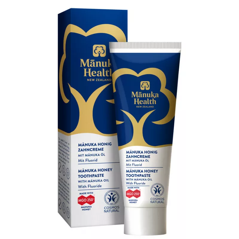 Prova il nostro nuovo dentifricio al miele di Manuka e senti il potere di 1,5 miliardi di api e il meglio della pianta di Manuka ogni volta che ti lavi i denti. Le formule uniche del nostro dentifricio utilizzano le eccezionali proprietà antibatteriche del miele Manuka Health Manuka. In questo modo si riduce efficacemente la formazione della placca in modo naturale, si combatte efficacemente la carie e si favoriscono gengive e denti sani. L'olio di manuka contenuto con il suo effetto antibatterico e antinfiammatorio garantisce una flora orale sana ed equilibrata. Protezione naturale per denti e gengive.