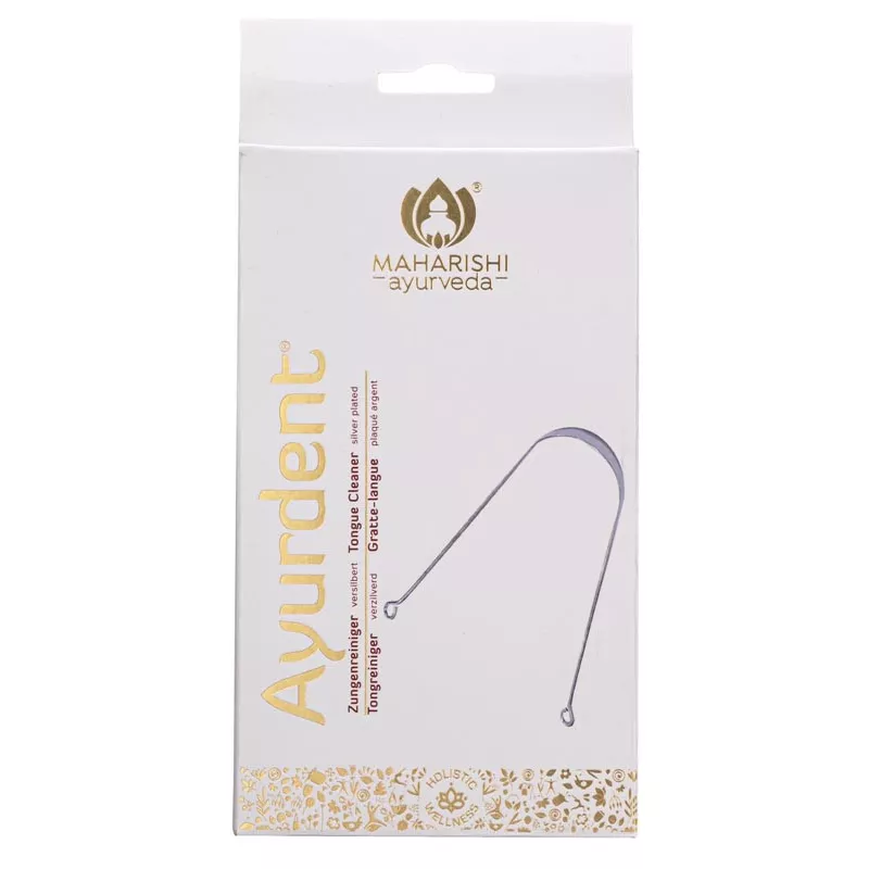 Il rivestimento della lingua si forma durante la notte.Questa miscela di batteri e tossine è solitamente la causa della malattia parodontale, della carie e dell'alito cattivo. Questo rivestimento della lingua non dovrebbe mai rientrare nel corpo. Pulisci delicatamente la lingua con il raschietto per lingua ayurvedico.