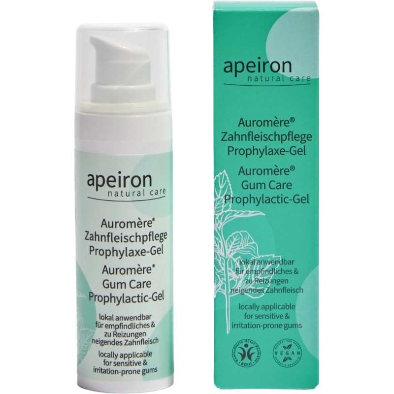 Apeiron Auromère® gel per la profilassi della cura delle gengive integra e supporta l'igiene orale quotidiana.