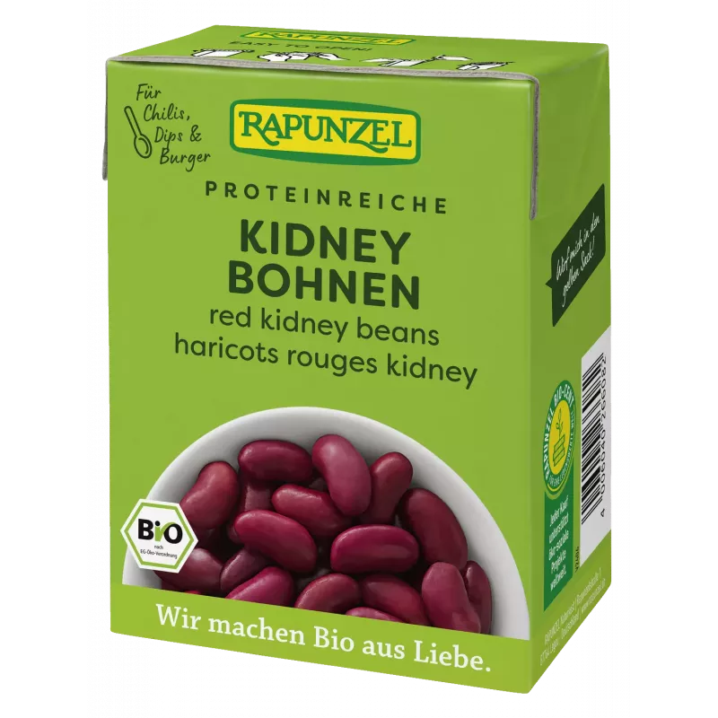 Fagioli rossi pronti per la cottura - per una cucina biologica veloce! Ora anche in un pratico TetraPak! Non c'è bisogno di ammollo e di cottura perché i fagioli sono delicatamente precotti. Con il loro sapore leggermente nocciolato e dolcemente aromatico, i fagioli rossi sono ideali per piatti salati e piccanti e possono essere utilizzati anche per prodotti da forno dolci.