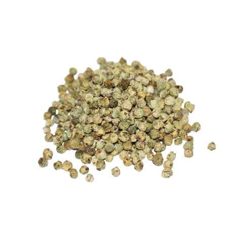 In caso di Pepe Verde è ancora immaturi raccolti Grani Pfefferpflanze Piper nigrum. Egli proviene prevalentemente dall'India. I grani di Pepe sulla Piantagione di raccolte a Mano e lavorate. Subito dopo la Vendemmia, i freschi Chicchi essiccati all'aria.